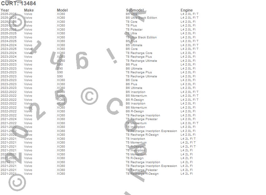Below is an abbreviated list of applications for the Class III 2 in. Receiver Hitch.XC60, Volvo, 2026, 2025, 2024, 2023, 2022, 2021, 2020