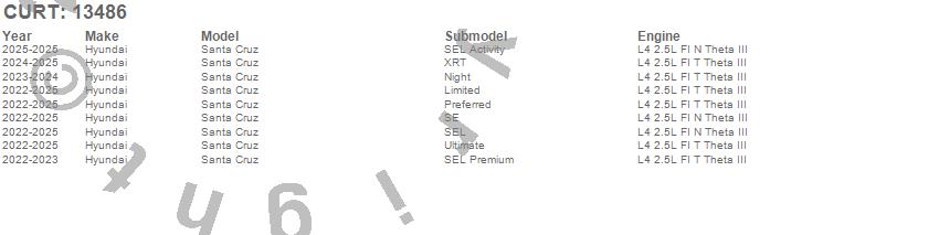Below is an abbreviated list of applications for the Class III 2 in. Receiver Hitch.Santa Cruz, Hyundai, 2026, 2025, 2024, 2023, 2022