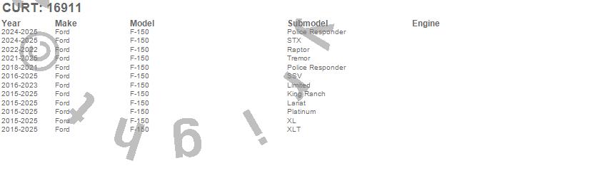 Brand: CURTPart Number: 16911Fifth Wheel Trailer Hitch Bracket Type: Use w/PN[16104/16204] - A-CoatUPC: 612314169115