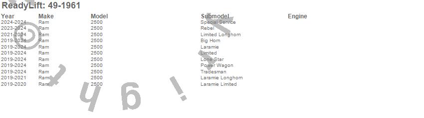 Below is an abbreviated list of applications for the Big Lift Kit w/Shocks.2500, Ram, 2024, 2023, 2022, 2021, 2020, 2019