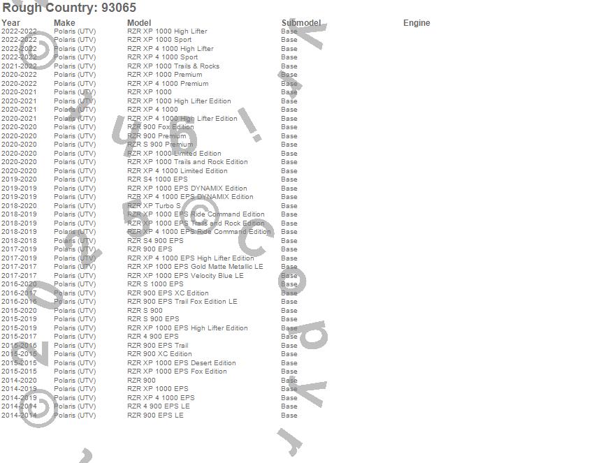 Below is an abbreviated list of applications for the Rock Sliders.RZR 4 900 EPS, RZR 4 900 EPS LE, RZR 900, RZR 900 EPS, RZR 900 EPS LE, RZR 900 EPS Trail, RZR 900 EPS Trail Fox Edition LE, RZR 900 EPS XC Edition, RZR 900 Fox Edition, RZR 900 Premium, RZR 900 XC Edition, RZR S 1000 EPS, RZR S 900, RZR S 900 EPS, RZR S 900 Premium, RZR S4 1000 EPS, RZR S4 900 EPS, RZR XP 1000, RZR XP 1000 EPS, RZR XP 1000 EPS Desert Edition