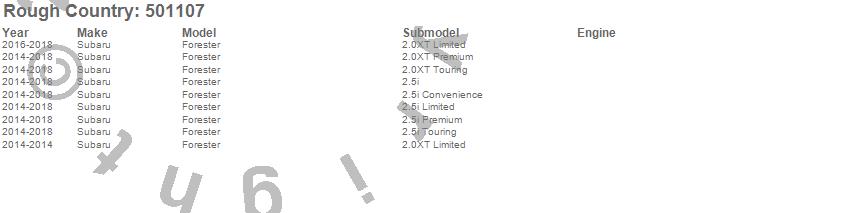 Below is an abbreviated list of applications for the Lifted N3 Struts.Forester, Subaru, 2018, 2017, 2016, 2015, 2014