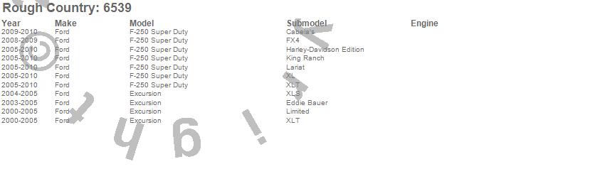 Below is an abbreviated list of applications for the U-Bolt Kit.Excursion, F-250 Super Duty, Ford, 2010, 2009, 2008, 2007, 2006, 2005, 2004, 2003, 2002, 2001, 2000