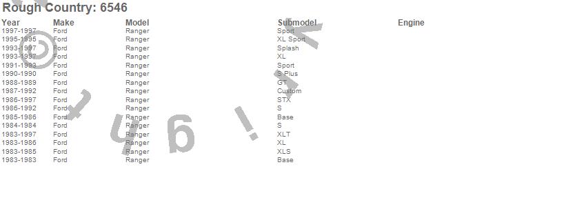 Below is an abbreviated list of applications for the U-Bolt Kit.Ranger, Ford, 1997, 1996, 1995, 1994, 1993, 1992, 1991, 1990, 1989, 1988, 1987, 1986, 1985, 1984, 1983