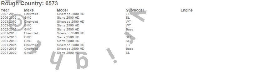Below is an abbreviated list of applications for the U-Bolt Kit.Sierra 2500 HD, Silverado 2500 HD, Chevrolet, GMC, 2010, 2009, 2008, 2007, 2006, 2005, 2004, 2003, 2002, 2001