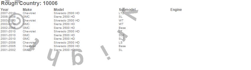 Below is an abbreviated list of applications for the Air Spring Kit.Sierra 2500 HD, Silverado 2500 HD, Chevrolet, GMC, 2010, 2009, 2008, 2007, 2006, 2005, 2004, 2003, 2002, 2001