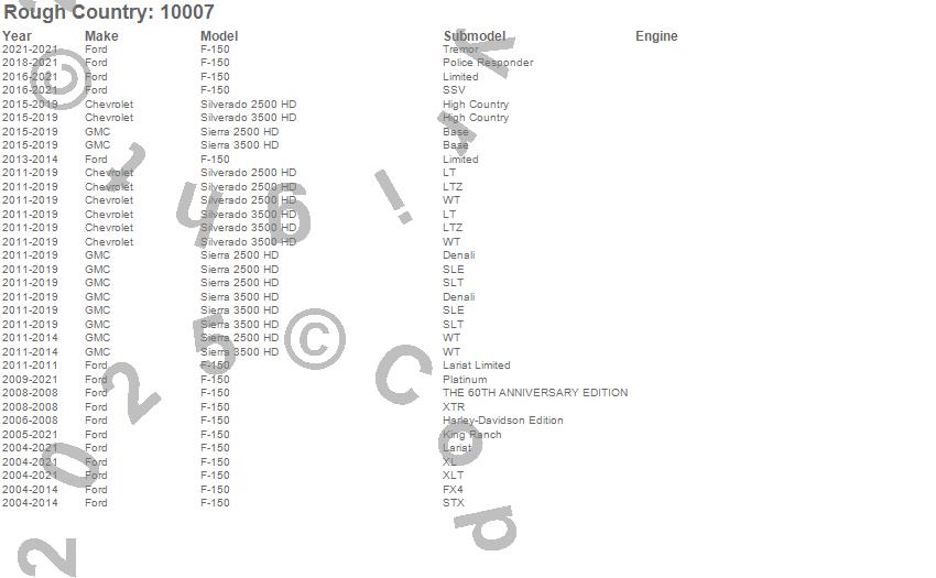 Brand: Rough CountryPart Number: 10007Suspension Air Spring Kit Type: 5000 lbs. Load CapacityUPC: 843030106522