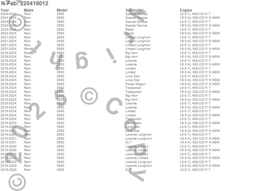 Below is an abbreviated list of applications for the Cab Length Nerf Step RS Bar.2500, 3500, Ram, 2025, 2024, 2023, 2022, 2021, 2020, 2019