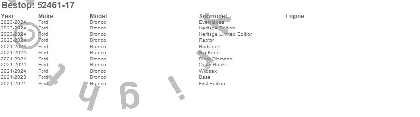 Below is an abbreviated list of applications for the Sunrider For Hardtop.Bronco, Ford, 2026, 2025, 2024, 2023, 2022, 2021