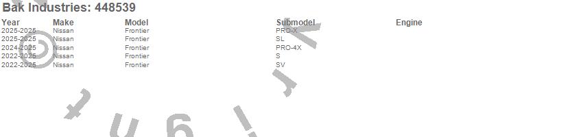 Brand: BAK IndustriesPart Number: 448539Tonneau Cover Type: Black - Aluminum - Matte FinishUPC: 192631045236