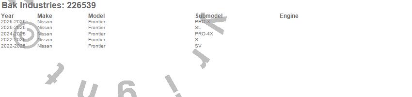 Brand: BAK IndustriesPart Number: 226539Tonneau Cover Type: Black - Aluminum - Gloss Black FinishUPC: 192631045229