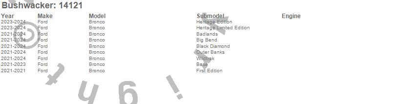 Below is an abbreviated list of applications for the TrailArmor Rocker Panel.Bronco, Ford, 2025, 2024, 2023, 2022, 2021