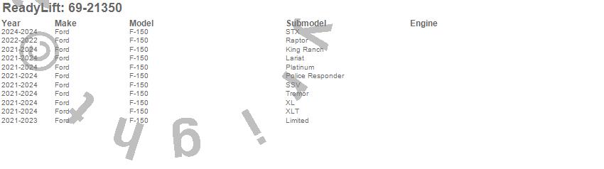 Brand: ReadyLiftPart Number: 69-21350Lift Kit-Suspension Type: 3.5 Front and 2.5 in. Rear LiftUPC: 194933165049