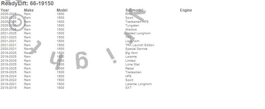 Below is an abbreviated list of applications for the Leveling Kit.1500, Ram, 2025, 2024, 2023, 2022, 2021, 2020, 2019