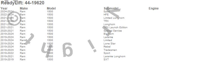 Below is an abbreviated list of applications for the Lift Kit.1500, Ram, 2024, 2023, 2022, 2021, 2020, 2019