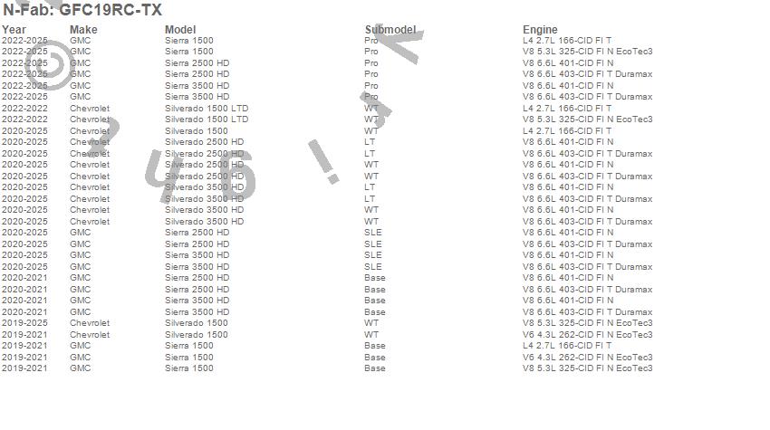 Below is an abbreviated list of applications for the Cab Length Growler Step System.Sierra 1500, Sierra 2500 HD, Sierra 3500 HD, Silverado 1500, Silverado 1500 LTD, Silverado 2500 HD, Silverado 3500 HD, Chevrolet, GMC, 2025, 2024, 2023, 2022, 2021, 2020, 2019