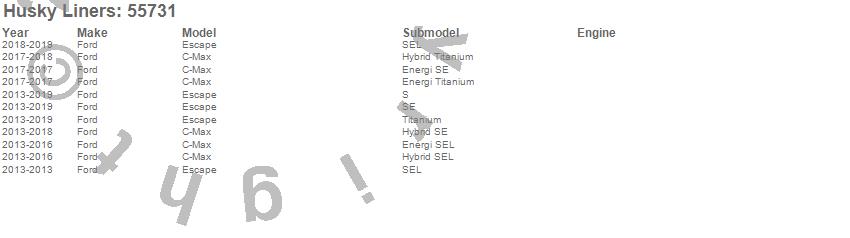Below is an abbreviated list of applications for the X-act Contour Floor Liner.C-Max, Escape, Ford, 2019, 2018, 2017, 2016, 2015, 2014, 2013