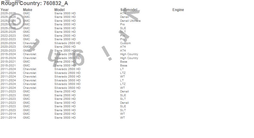 Below is an abbreviated list of applications for the V2 Shock Absorbers.Sierra 2500 HD, Sierra 3500 HD, Silverado 2500 HD, Silverado 3500 HD, Chevrolet, GMC, 2025, 2024, 2023, 2022, 2021, 2020, 2019, 2018, 2017, 2016, 2015, 2014, 2013, 2012