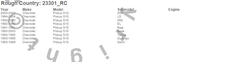 Brand: Rough CountryPart Number: 23301_RCShock Absorber Type: Front - For RC 6 in.UPC: 840269900419