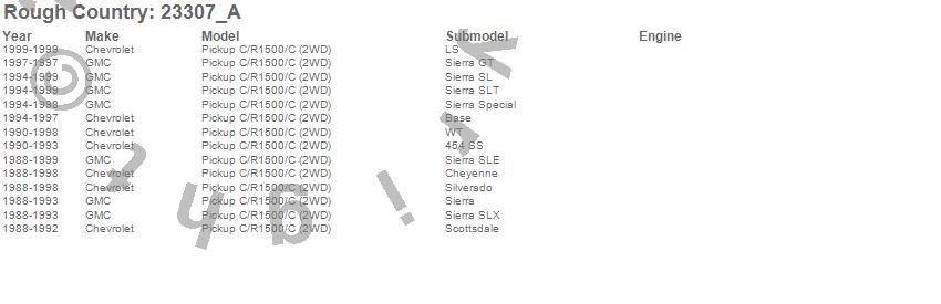 Below is an abbreviated list of applications for the N3 Shocks.C1500 Pickup, Chevrolet, GMC, 1999, 1998, 1997, 1996, 1995, 1994, 1993, 1992, 1991, 1990, 1989, 1988