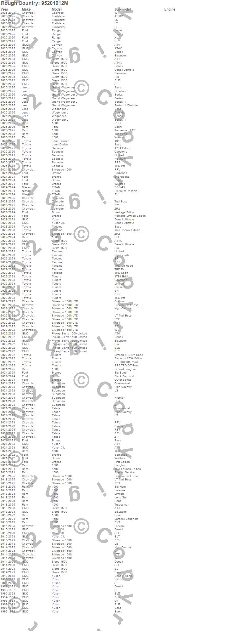 Below is an abbreviated list of applications for the One-Piece Series 95 Wheel.1500, 4Runner, Bronco, Canyon, Colorado, Escalade, Grand Wagoneer L, Land Cruiser, Pickup Sierra 1500 Limited, Ranger, Sequoia, Sierra 1500, Silverado 1500, Silverado 1500 LTD, Suburban, Tacoma, Tahoe, TITAN, Trailblazer, Tundra