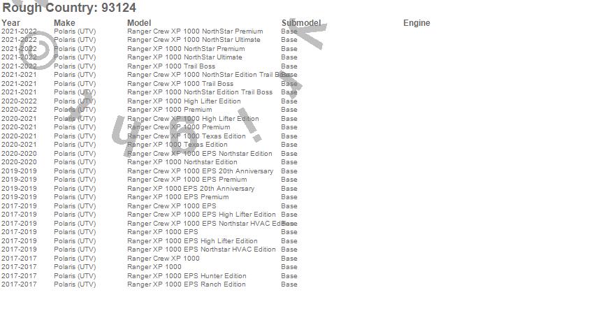Below is an abbreviated list of applications for the LED Light Kit.Ranger Crew XP 1000, Ranger Crew XP 1000 EPS, Ranger Crew XP 1000 EPS 20th Anniversary, Ranger Crew XP 1000 EPS High Lifter Edition, Ranger Crew XP 1000 EPS Northstar Edition, Ranger Crew XP 1000 EPS Northstar HVAC Edition, Ranger Crew XP 1000 EPS Premium, Ranger Crew XP 1000 High Lifter Edition, Ranger Crew XP 1000 NorthStar Edition Trail Boss, Ranger Crew XP 1000 NorthStar Premium, Ranger Crew XP 1000 NorthStar Ultimate, Ranger Crew XP 1000 Premium, Ranger Crew XP 1000 Texas Edition, Ranger Crew XP 1000 Trail Boss, Ranger XP 1000, Ranger XP 1000 EPS, Ranger XP 1000 EPS 20th Anniversary, Ranger XP 1000 EPS High Lifter Edition, Ranger XP 1000 EPS Hunter Edition, Ranger XP 1000 EPS Northstar HVAC Edition