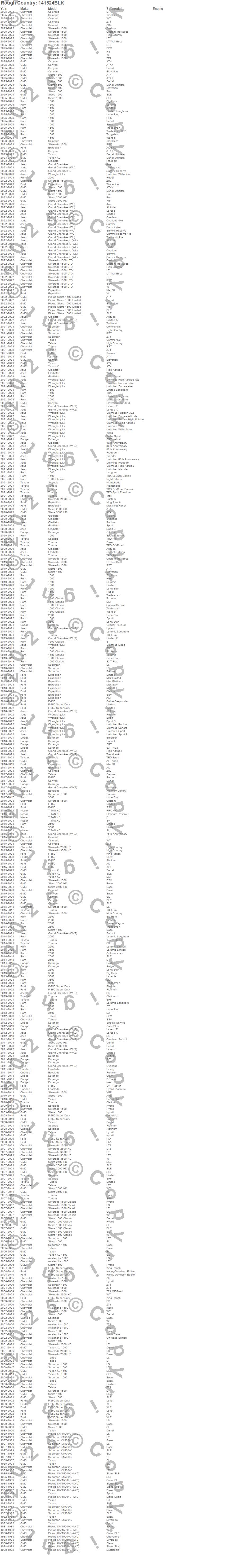Below is an abbreviated list of applications for the Wheel Installation Kit.1500, 1500 Classic, 2500, 3500, Avalanche 1500, Canyon, Colorado, Durango, Escalade, Expedition, F-150, F-250 Super Duty, F-350 Super Duty, Gladiator, Grand Cherokee, Grand Cherokee (WK2), Grand Cherokee (WL), Grand Cherokee L, Grand Cherokee L (WL), K1500