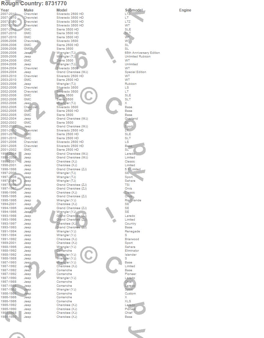 Below is an abbreviated list of applications for the Steering Stabilizer.Cherokee (XJ), Comanche, Grand Cherokee (WJ), Grand Cherokee (ZJ), Sierra 2500 HD, Sierra 3500, Sierra 3500 HD, Silverado 2500 HD, Silverado 3500, Silverado 3500 HD, Wrangler (TJ), Wrangler (YJ), Chevrolet, GMC, Jeep, 2010, 2009, 2008, 2007, 2006