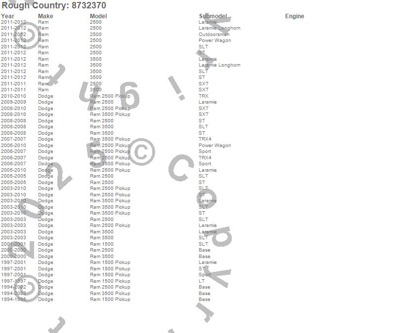 Below is an abbreviated list of applications for the Steering Stabilizer.2500, 3500, Ram 1500, Ram 2500, Ram 3500, Dodge, Ram, 2012, 2011, 2010, 2009, 2008, 2007, 2006, 2005, 2004, 2003, 2002, 2001, 2000