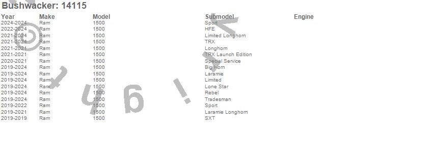 Brand: BushwackerPart Number: 14115Rocker Panel Type: 4 pc. - BlackUPC: 090689000385