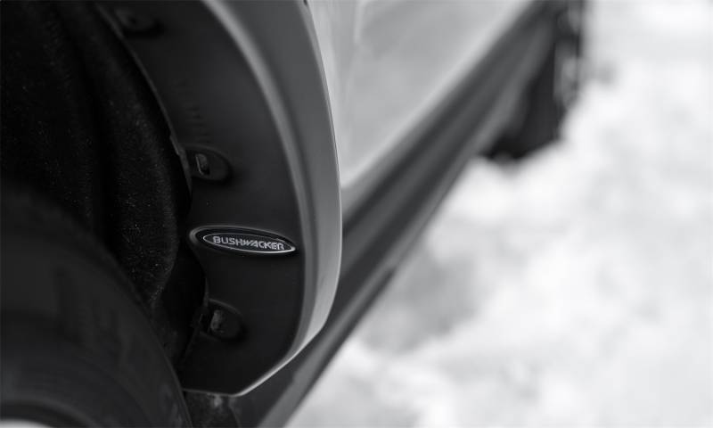 Buy this Pocket Style Fender Flares Bushwacker 20952-02 4 pc. - Front Tire Coverage 1.5 in. - Front Height 4.25 in. - Rear Tire Coverage 1.5 in - Rear Height 4.75 in. - Smooth Finish - Black here at SVCustoms.com an authorized Bushwacker Fender Flare dealer and distributor.