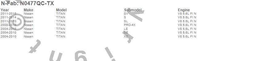 Below is an abbreviated list of applications for the Cab Length Nerf Step Bar.TITAN, Nissan, 2015, 2014, 2013, 2012, 2011, 2010, 2009, 2008, 2007, 2006, 2005, 2004