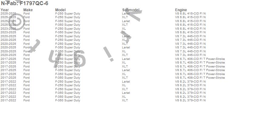 Below is an abbreviated list of applications for the Wheel To Wheel Nerf Step Bar w/Bed Access.F-250 Super Duty, F-350 Super Duty, Ford, 2025, 2024, 2023, 2022, 2021, 2020, 2019, 2018, 2017