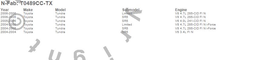 Below is an abbreviated list of applications for the Wheel To Wheel Nerf Step Bar.Tundra, Toyota, 2006, 2005, 2004