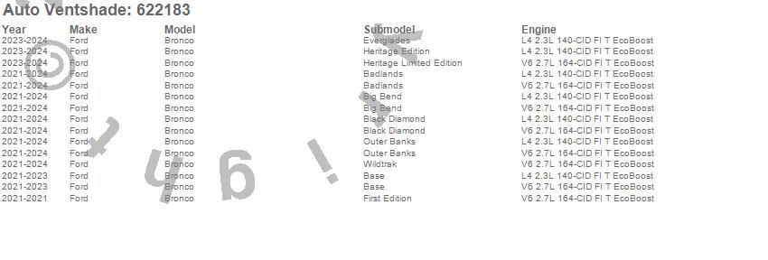 Below is an abbreviated list of applications for the Aeroskin Chrome Hood Protector.Bronco, Ford, 2024, 2023, 2022, 2021