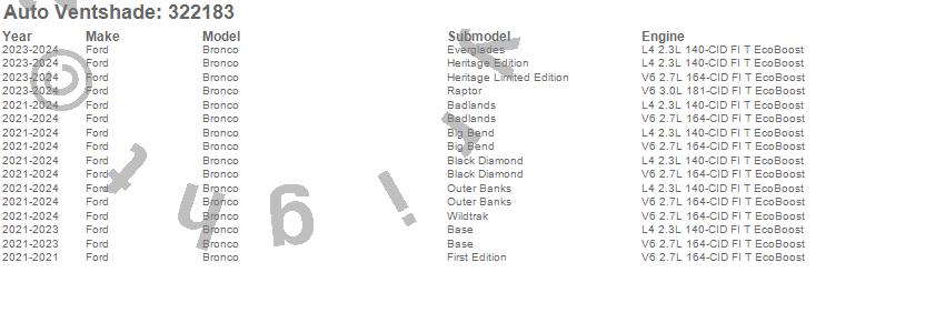 Below is an abbreviated list of applications for the Aeroskin Smoke Hood Protector.Bronco, Ford, 2024, 2023, 2022, 2021