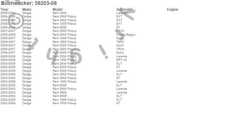 Below is an abbreviated list of applications for the Forge Style Fender Flares.Ram 1500, Ram 2500, Ram 3500, Dodge, 2009, 2008, 2007, 2006, 2005, 2004, 2003, 2002
