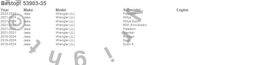 Below is an abbreviated list of applications for the Halftop Soft Top.Wrangler (JL), Jeep, 2023, 2022, 2021, 2020, 2019, 2018