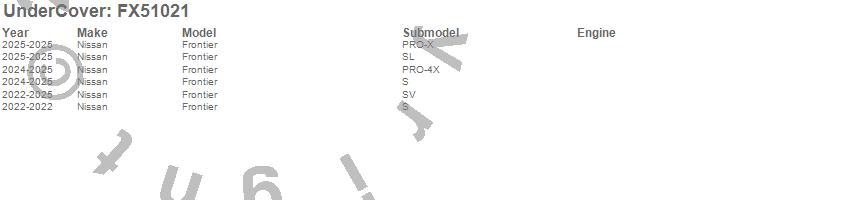 Brand: UnderCoverPart Number: FX51021Tonneau Cover Type: Black Textured - w/or w/out Utili-Track SystemUPC: 840114306809