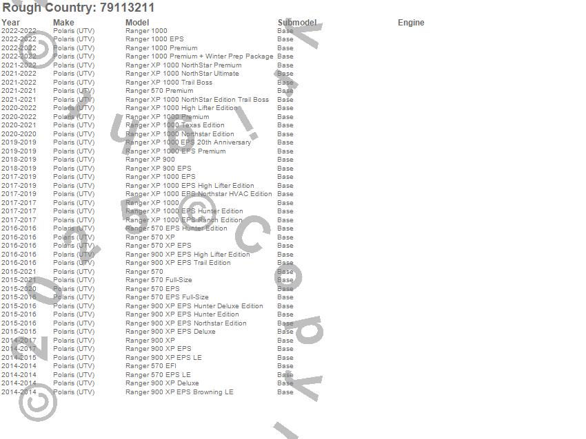 Brand: Rough CountryPart Number: 79113211Top-Hard Type: Scratch ResistantUPC: 840269902208