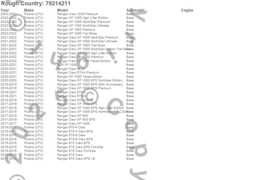 Below is an abbreviated list of applications for the Molded UTV Roof.Ranger 570 Crew, Ranger 570 Crew EPS, Ranger 570 Crew EPS Full-Size, Ranger 570 Crew EPS LE, Ranger 570 Crew Full-Size, Ranger 570-4 Crew, Ranger 570-4 Crew EPS, Ranger 570-6 Crew, Ranger 570-6 Crew EPS, Ranger Crew 1000, Ranger Crew 1000 Premium, Ranger Crew 570-4, Ranger Crew 570-4 EPS, Ranger Crew 570-4 Premium, Ranger Crew 570-6, Ranger Crew XP 1000, Ranger Crew XP 1000 EPS, Ranger Crew XP 1000 EPS 20th Anniversary, Ranger Crew XP 1000 EPS High Lifter Edition, Ranger Crew XP 1000 EPS Northstar Edition