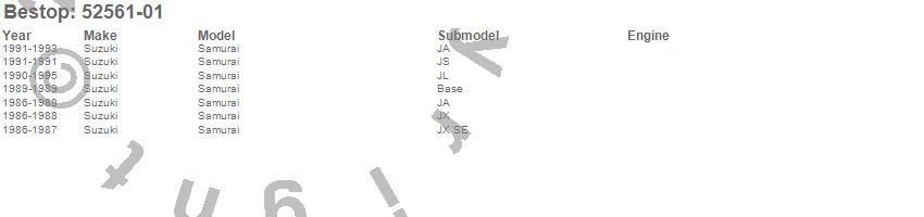Below is an abbreviated list of applications for the Strapless Standard Targa Style Bikini Top.Samurai, Suzuki, 1995, 1994, 1993, 1992, 1991, 1990, 1989, 1988, 1987, 1986