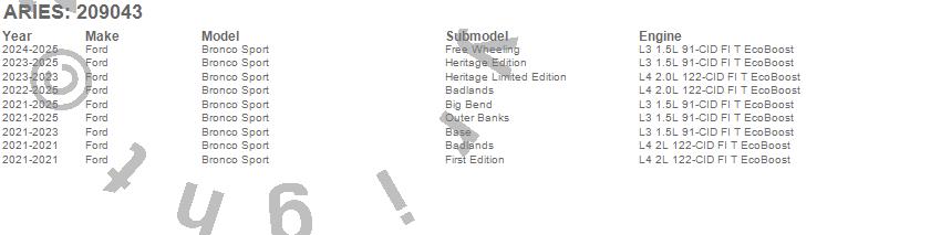 Below is an abbreviated list of applications for the 3 in. Round Side Bars.Bronco Sport, Ford, 2025, 2024, 2023, 2022, 2021
