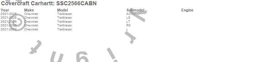 Below is an abbreviated list of applications for the Covercraft Carhartt SeatSaver.Trailblazer, Chevrolet, 2025, 2024, 2023, 2022, 2021