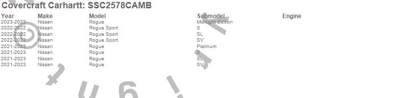 Below is an abbreviated list of applications for the Covercraft Carhartt SeatSaver.Rogue, Rogue Sport, Nissan, 2025, 2024, 2023, 2022, 2021