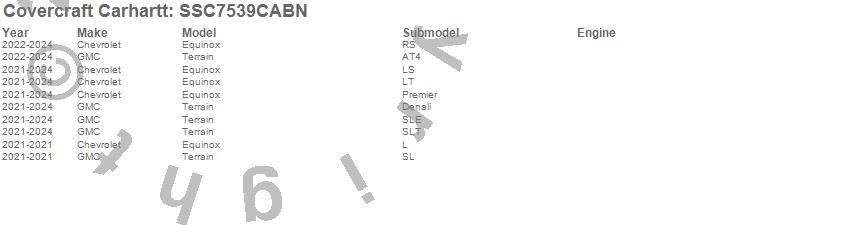 Below is an abbreviated list of applications for the Covercraft Carhartt SeatSaver.Equinox, Terrain, Chevrolet, GMC, 2024, 2023, 2022, 2021