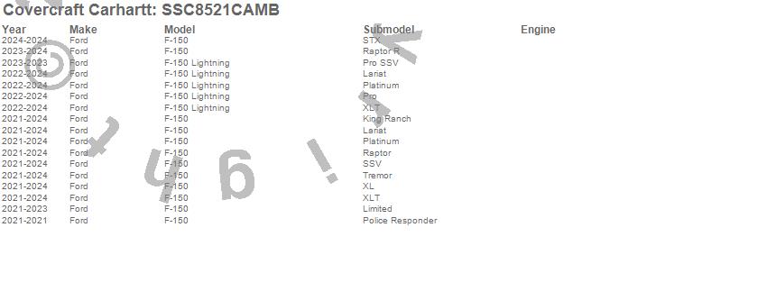 Below is an abbreviated list of applications for the Covercraft Carhartt SeatSaver.F-150, F-150 Lightning, Ford, 2025, 2024, 2023, 2022, 2021