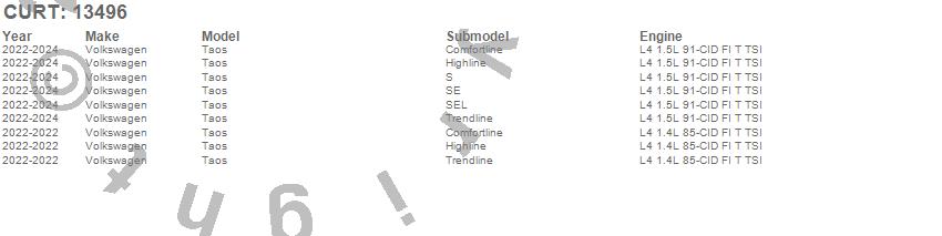 Below is an abbreviated list of applications for the Class III 2 in. Receiver Hitch.Taos, Volkswagen, 2025, 2024, 2023, 2022