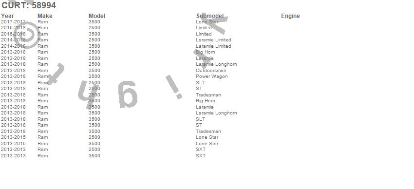 Brand: CURTPart Number: 58994Trailer Wire Connector Type: Towed-Vehicle RVUPC: 612314589944