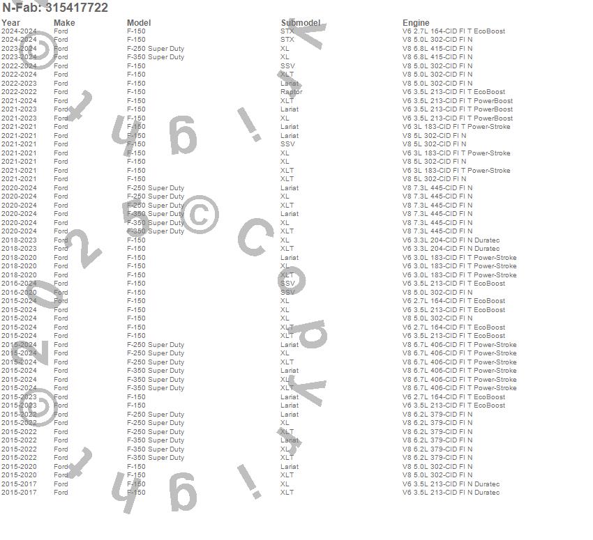 Below is an abbreviated list of applications for the Cab Length Nerf Step RS Bar.F-150, F-250 Super Duty, F-350 Super Duty, Ford, 2025, 2024, 2023, 2022, 2021, 2020, 2019, 2018, 2017, 2016, 2015